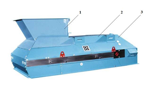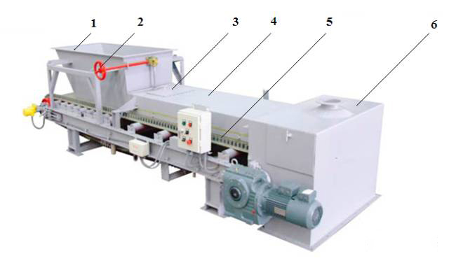 1-进料斗;2-给料闸板调节手轮;3-检修观察孔盖板;4-半封闭罩;