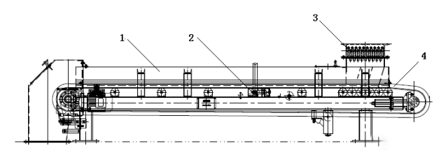 1-半密封罩;2-称量托辊;3-插棒阀;4-环形波纹挡边皮带