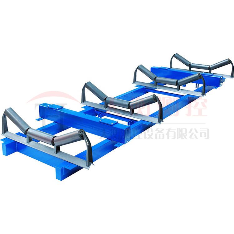 秤架上放置四组托辊,为全悬浮式结构,无耳轴支点和可移动件,两个横梁上吊有四支拉式称重传感器,以便物料通过秤架使之受力。