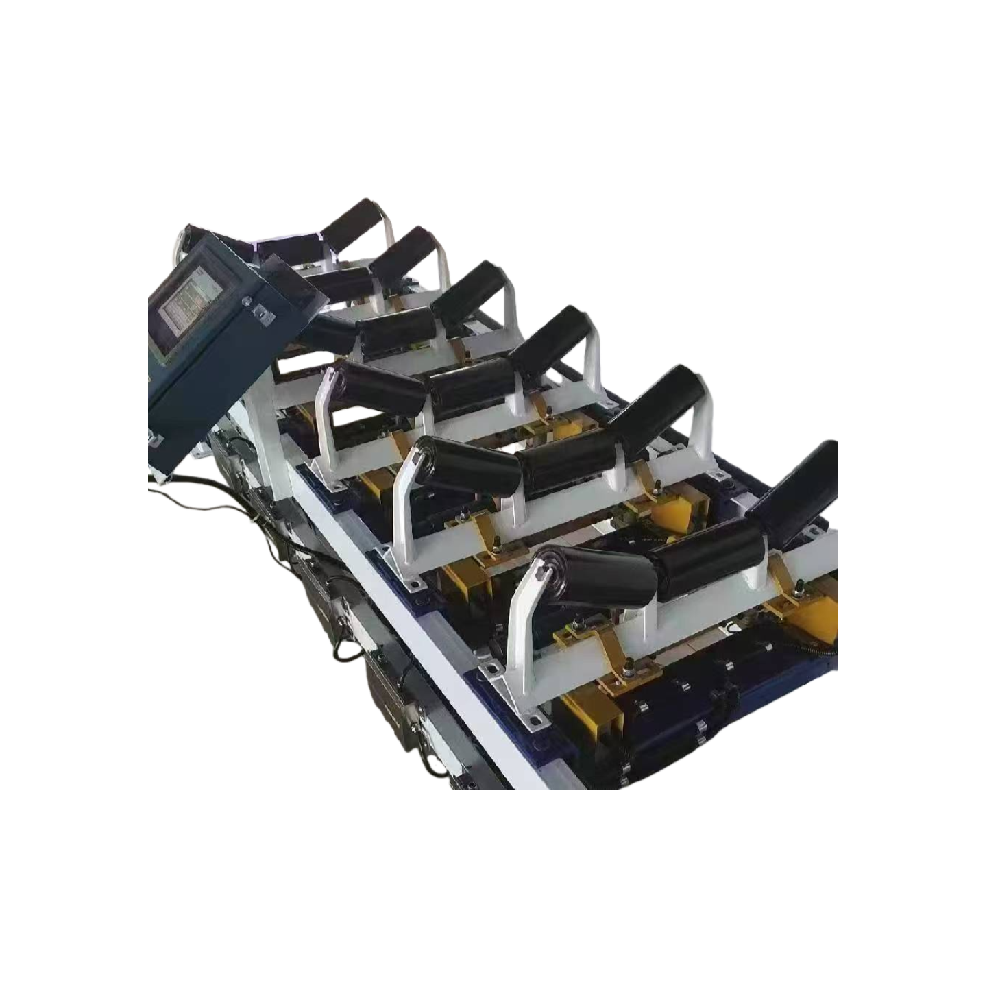 TH-GZK-NT/66高精度皮带秤采用6组全悬浮式称重桥架,无耳轴支点和可移动部件,不受非垂直力以外的各种侧向力和水平力干扰(包括托辊摩擦力、皮带及物料运行的水平分力),对称重需要测量的垂直力量感应更迅速。